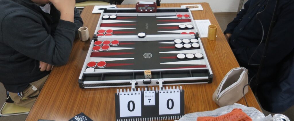 効果てきめん、一組の家族が入って来てくれました。家にもボードがあるそうで経験者です。そこにもう一組の家族が、親子で対戦したいと入って来てくれました。例会に遊びに来てくれているメンバーがレクチャーしてくれます。そしてもう一人、全く無経験の女性が入って来てくれました。4枚のボードそれぞれでバックギャモンの魅力が拡がります。都合9人が、バックギャモンと埼玉例会を少しだけ経験して楽しんでくださいました。またいつか遊びに来てくれたら嬉しいです。来月からもバックギャモンの言葉だけは告知しようかと思いました。