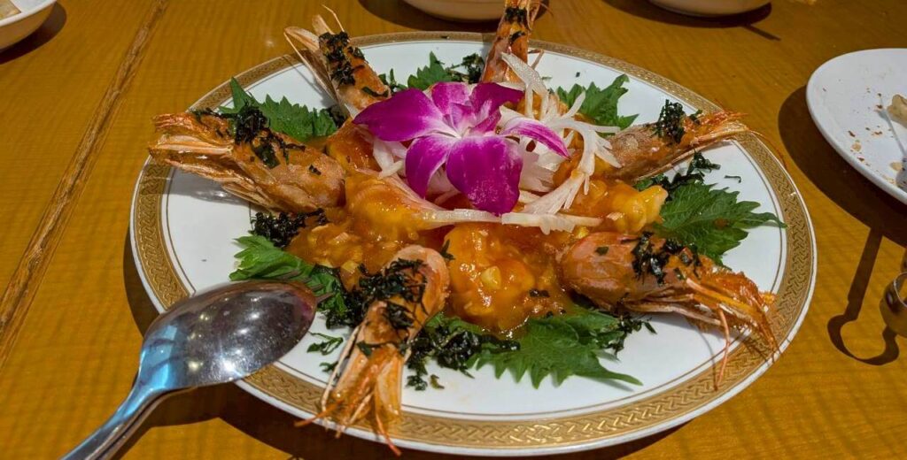 打ち上げの香港亭は6人。店長から食用花を飾りつけた一品がサービスがされました。寒いので2人がソフトクリームに参加しませんでした。